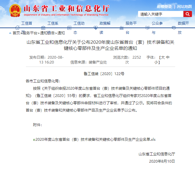2020年度山東省首臺(套)2020年技術裝備和關鍵核心零部件及生產(chǎn)企業(yè)名單