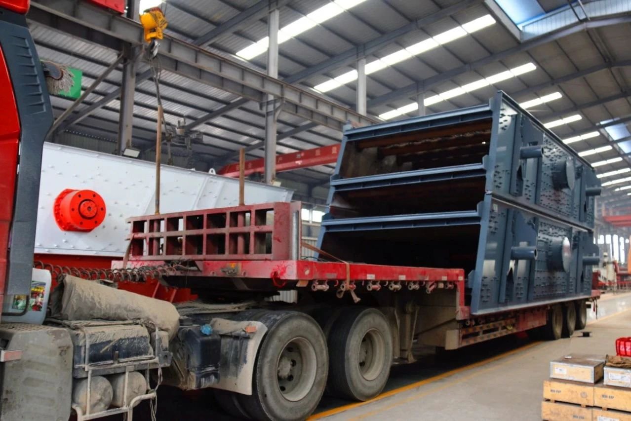走進(jìn)鑫金山生產(chǎn)基地,一片繁忙而有序的景象映入眼簾。一輛輛貨車整齊排列,工人們正緊張而熟練地將各類設(shè)備吊運(yùn)裝車。從巨大的破碎機(jī)到精密的篩分設(shè)備,每一臺都承載著鑫金山對品質(zhì)的執(zhí)著追求和對客戶的鄭重承諾。