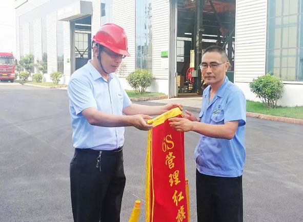 在半年總結(jié)6S表彰時(shí),陳克峰所在的焊接工段第一名,授獎(jiǎng)授旗。