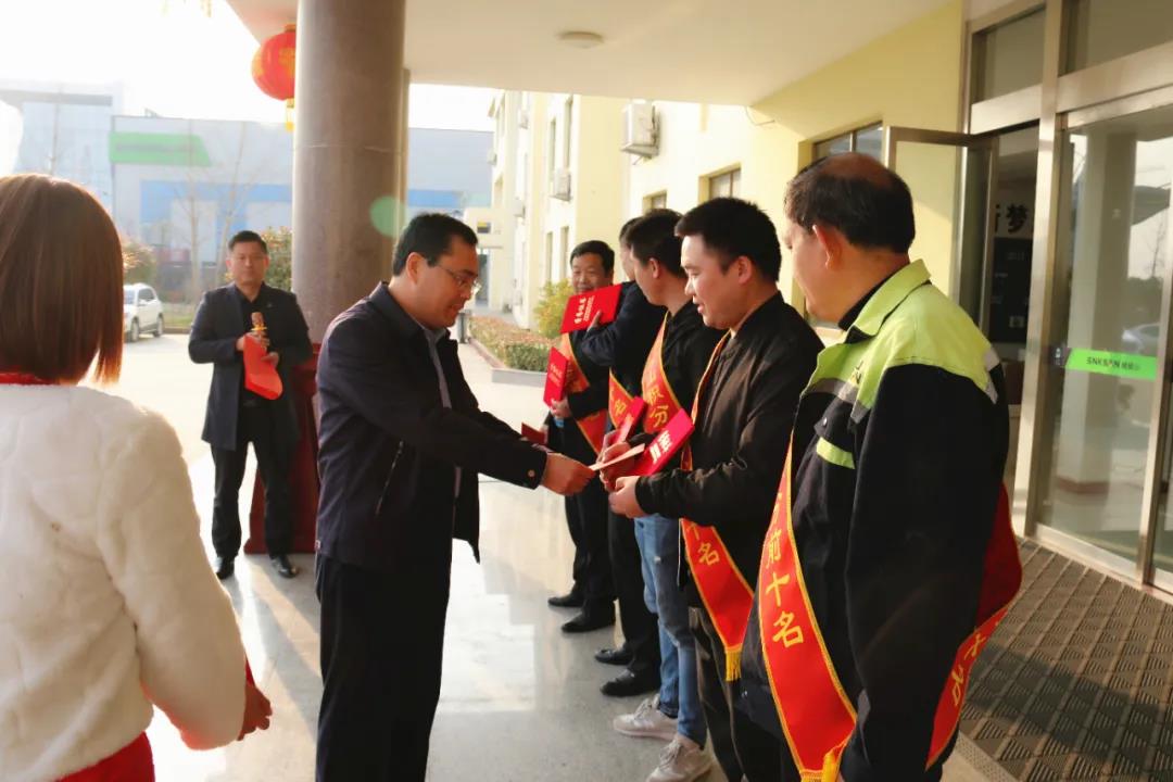 總經(jīng)理裴尚分別為獲獎(jiǎng)人員頒發(fā)了榮譽(yù)證書(shū)及獎(jiǎng)勵(lì)。大家興高采烈的從裴總手中接過(guò)沉甸甸的榮譽(yù)與紅包。獲得這項(xiàng)榮譽(yù)與他們?nèi)粘Eぷ髅懿豢煞帧?/p>