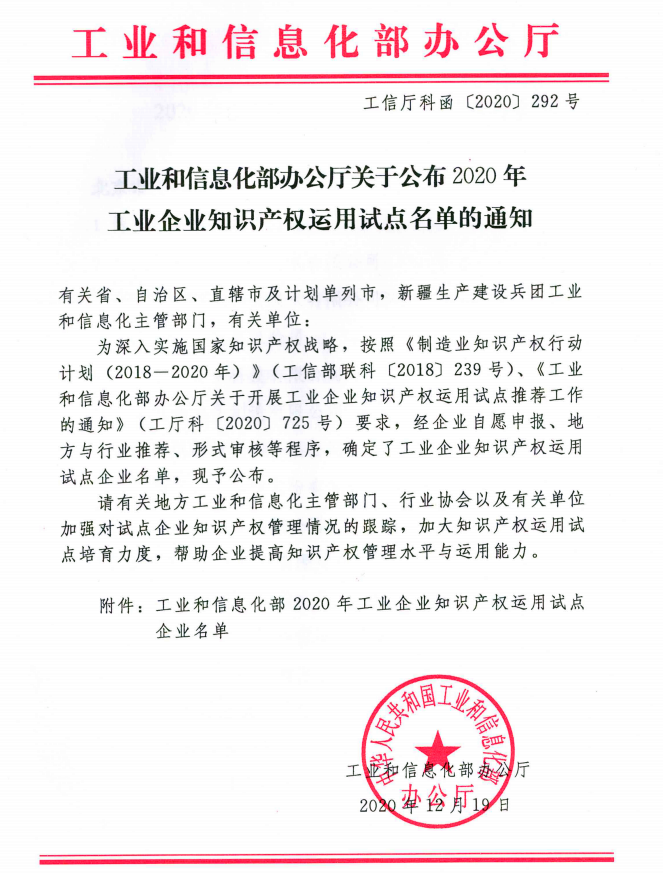 這是工信部為貫徹落實(shí)guojia知識產(chǎn)權(quán)戰(zhàn)略,按照《制造業(yè)知識產(chǎn)權(quán)行動計劃(2018-2020年)》(工信部聯(lián)科〔2018〕239號)、《工業(yè)和信息化部辦公廳關(guān)于開展工業(yè)企業(yè)知識產(chǎn)權(quán)運(yùn)用試點(diǎn)推薦工作的通知》(工廳科〔2020〕725號)工作部署,推進(jìn)工業(yè)企業(yè)知識產(chǎn)權(quán)運(yùn)用發(fā)展,在國內(nèi)工業(yè)企業(yè)知識產(chǎn)權(quán)運(yùn)用領(lǐng)域開展的官方權(quán)威征集。通過實(shí)施工業(yè)企業(yè)知識產(chǎn)權(quán)運(yùn)用試點(diǎn)企業(yè)模式,可有效提升知識產(chǎn)權(quán)運(yùn)用試點(diǎn)培育力度,加強(qiáng)企業(yè)知識產(chǎn)權(quán)管理水平與運(yùn)用能力。