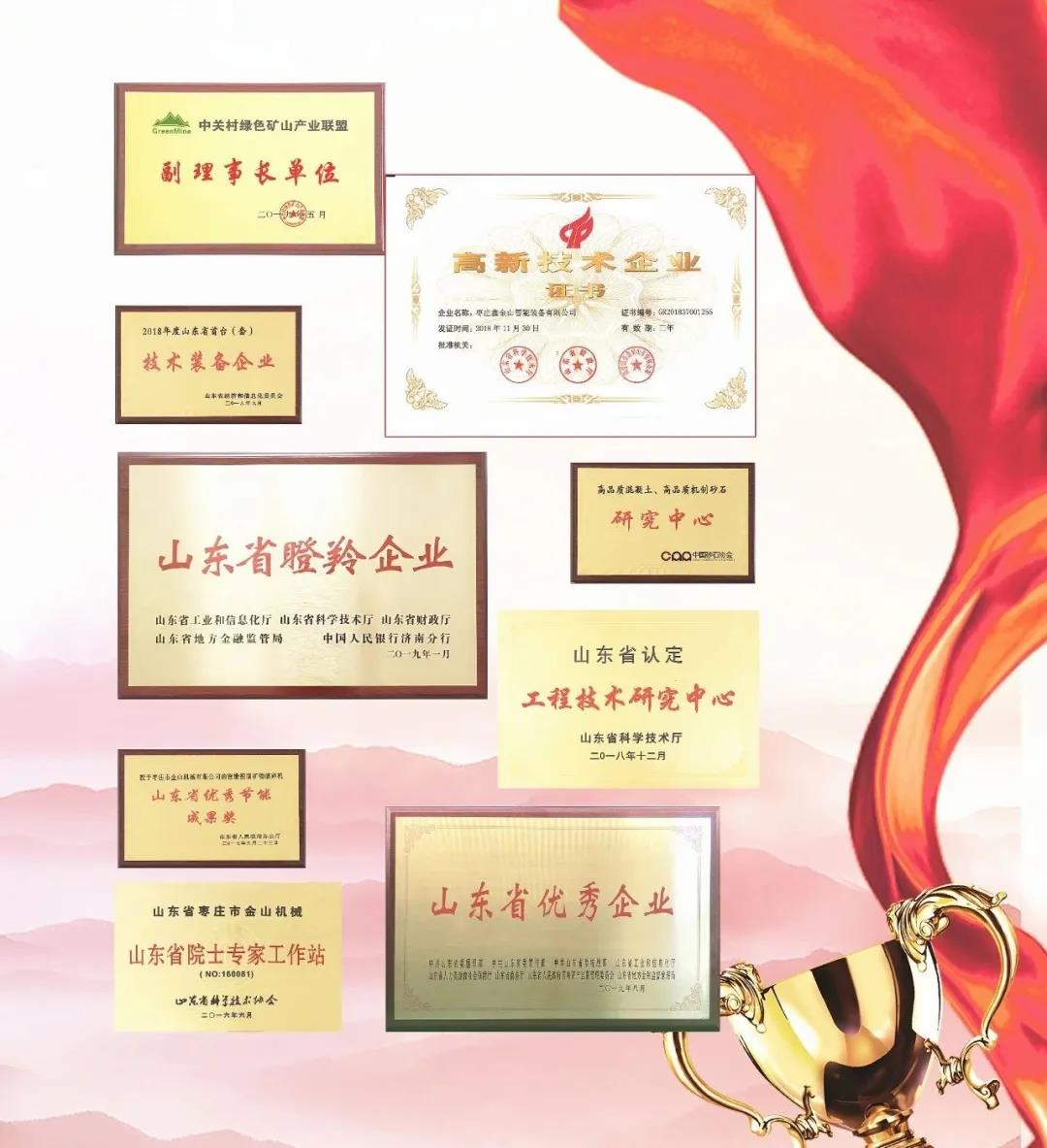 截止目前,公司成功取得各項(xiàng)授權(quán)專利102項(xiàng),并先后榮獲2015、2016、2018、2019、2020山東首臺套技術(shù)裝備企業(yè),中國創(chuàng)新創(chuàng)業(yè)大賽優(yōu)秀企業(yè),山東省技術(shù)創(chuàng)新示范企業(yè),連續(xù)三年獲得優(yōu)秀節(jié)能成果獎,2019年綠色礦山科學(xué)技術(shù)研發(fā)類一等獎,山東省科學(xué)技術(shù)二等獎,山東省優(yōu)質(zhì)品牌產(chǎn)品、知名品牌產(chǎn)品,工信部專精特新“小巨人”企業(yè),山東省瞪羚企業(yè)等榮譽(yù)。